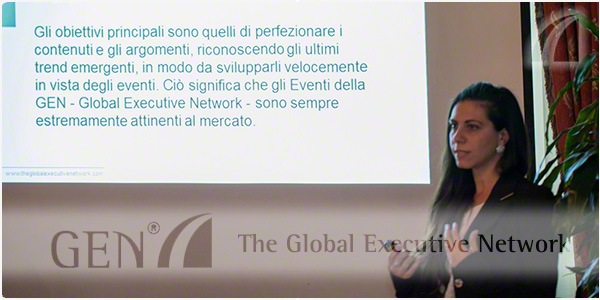 GEN - The Global Executive Network è un’organizzazione internazionale di cene dirigenziali di alto livello per professionisti. Alle cene si affrontano diversi argomenti, da problematiche per le industrie ad argomenti di gestione. La sede dell’azienda è a Wilmington, DE negli USA, ed ha un’eccellente reputazione come società di eventi a livello globale. Ogni anno, partecipano agli eventi più di 10,000 dirigenti di grandi multinazionali e imprese di medio livello. Ogni anno vengono organizzati più di 1,000 eventi coprendo 50 diversi argomenti.
